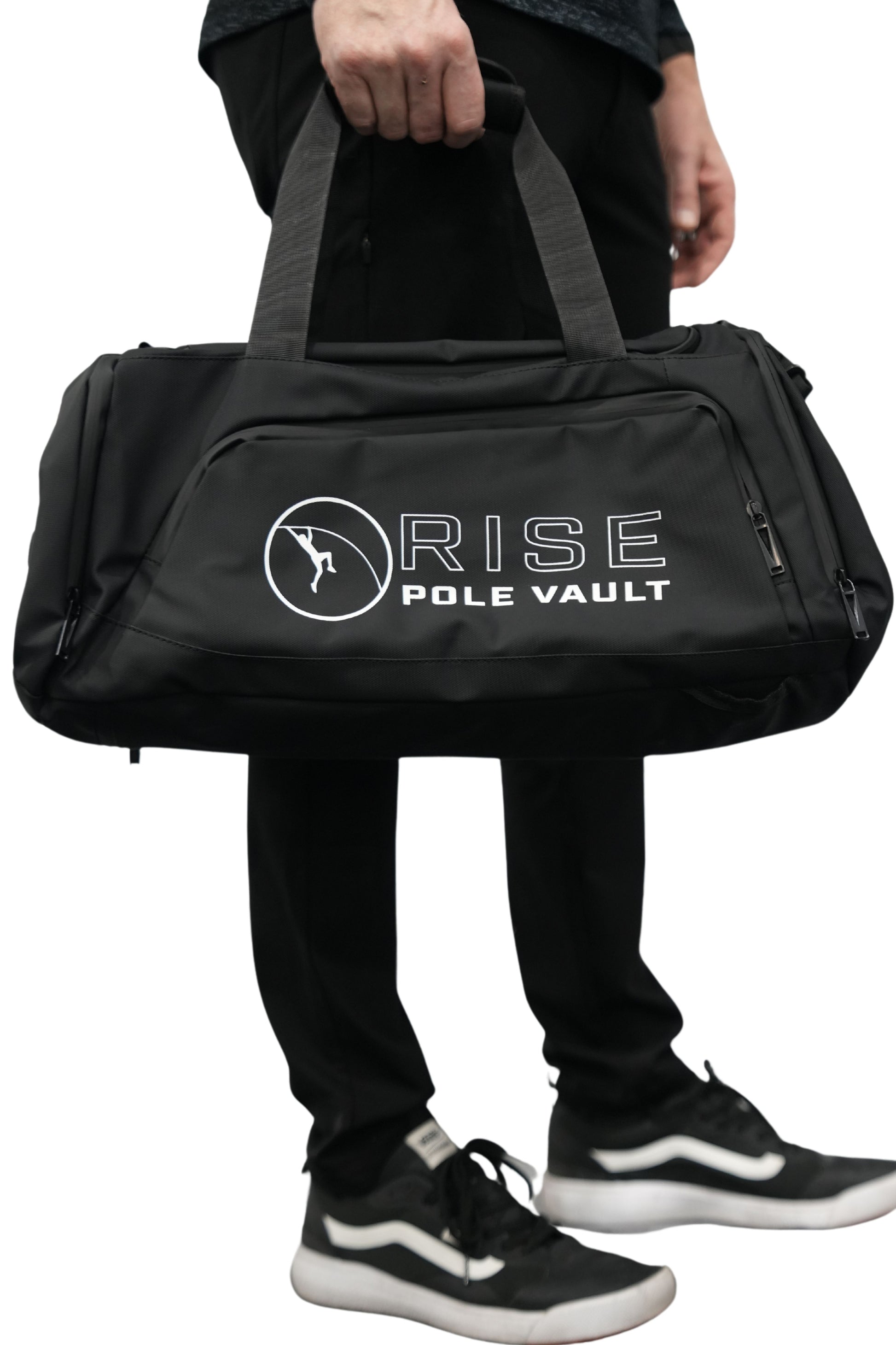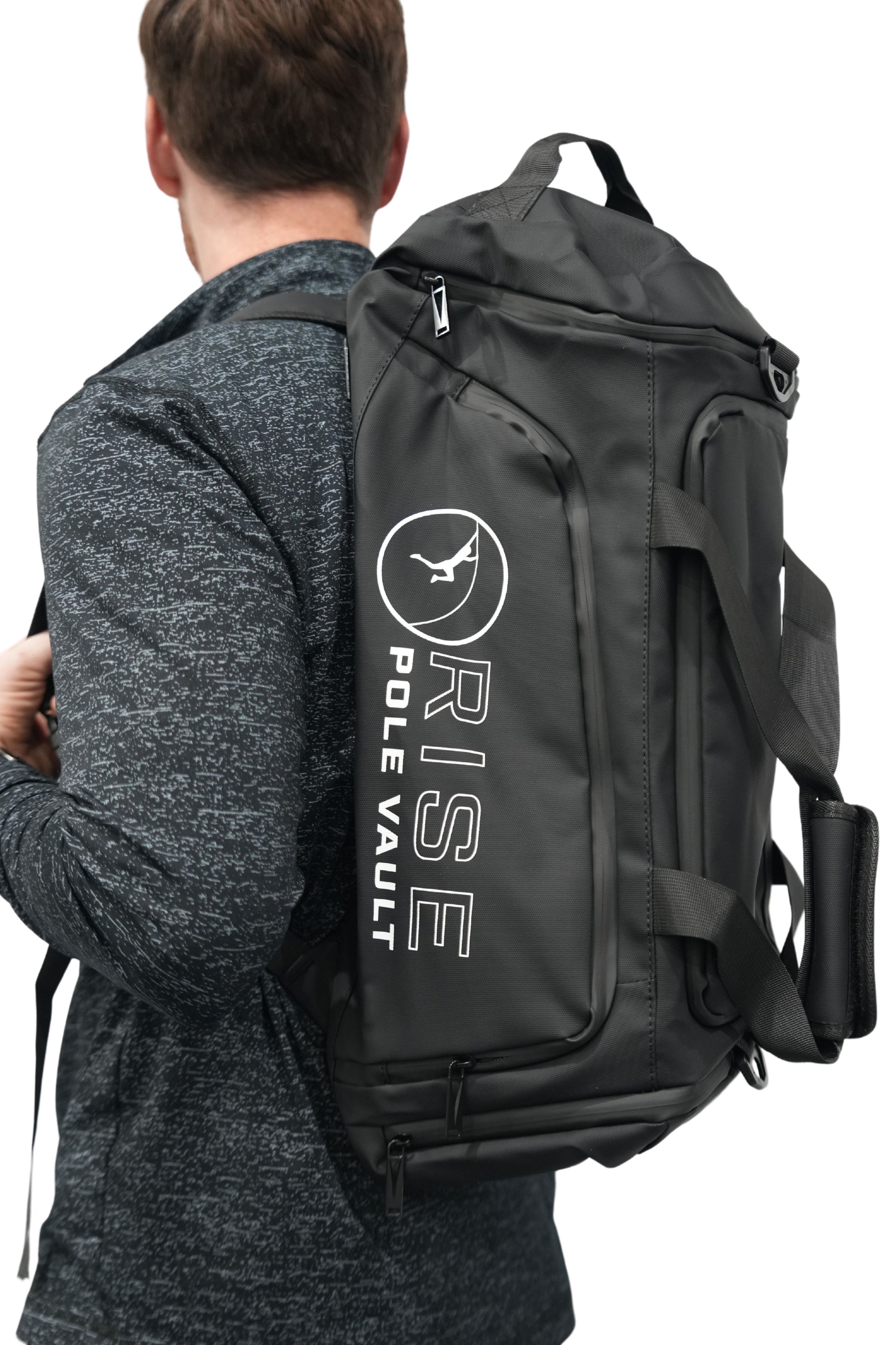 Take your gear anywhere with the RISE Pole Vault backpack-duffle! Designed for athletes on the go, this bag can be worn as a backpack or carried as a duffle, making it perfect for training, travel, or everyday use. With plenty of space and a sleek black design, it’s built to handle everything you need while repping RISE Pole Vault in style.